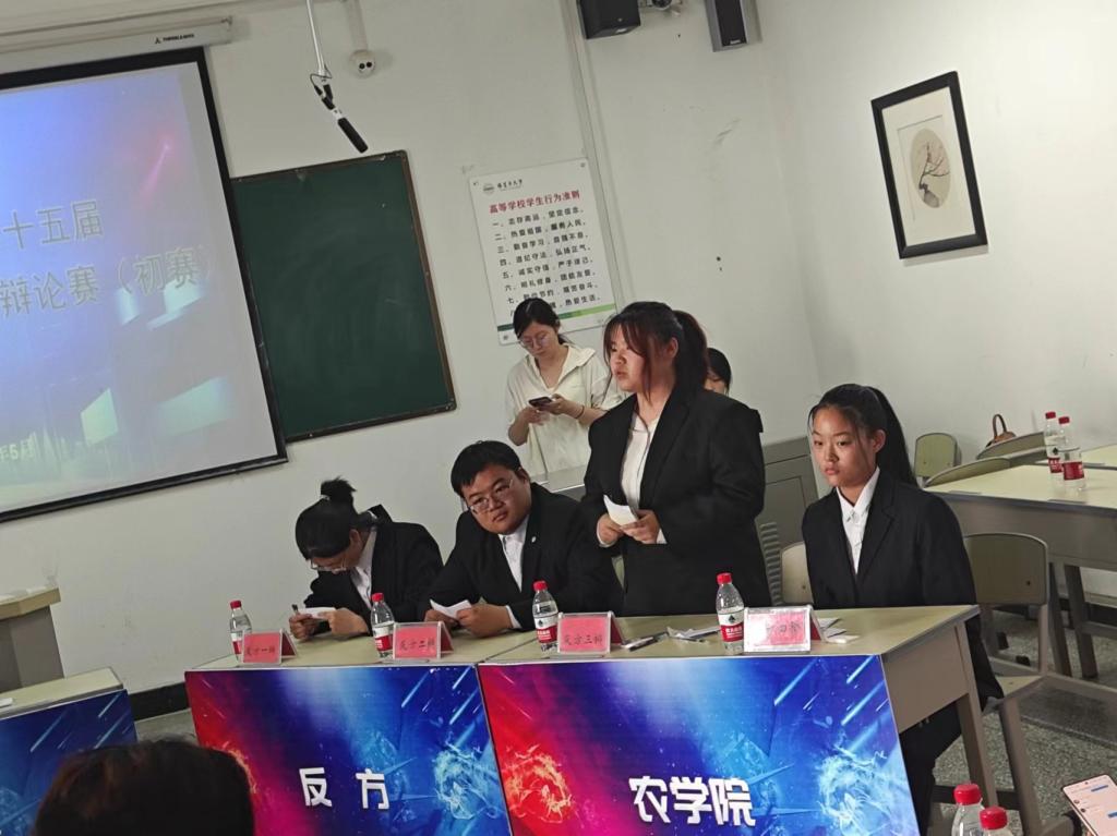 我院代表队在比赛中充分运用辩论技巧,立场坚定,观点明确,据理力争,赢得了评委和观众的一致好评。凭借出色的发挥在初赛中斩获佳绩,喜获胜利。在此次比赛中,展现了我院辩论队成员清晰的逻辑思维、严密的论证能力和沉稳的表达风格,充分展现了农科学子风貌。