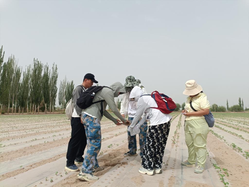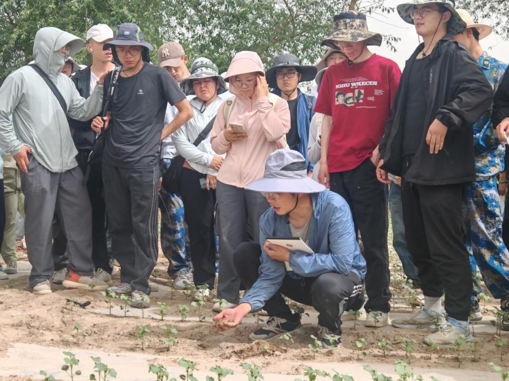 5月20日,农学院农学2021级、种子科学与工程2021级两个专业校内实习学生前往塔里木大学南疆产教融合现代农业实训基地进行棉花、玉米、大豆等作物的苗情调查,同时探究局部地块不出苗原因。