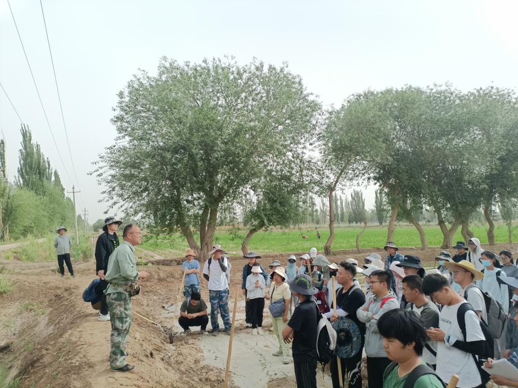 实习伊始,指导老师王有武教授理论联系实际,着重向大家分析了影响棉花出苗率的关键因素,赢得了同学们的阵阵喝彩。授课结束后,实习学生根据王老师的讲授和示范的方法进行实地取样,探究土壤盐碱是否影响作物出苗的主要原因。
