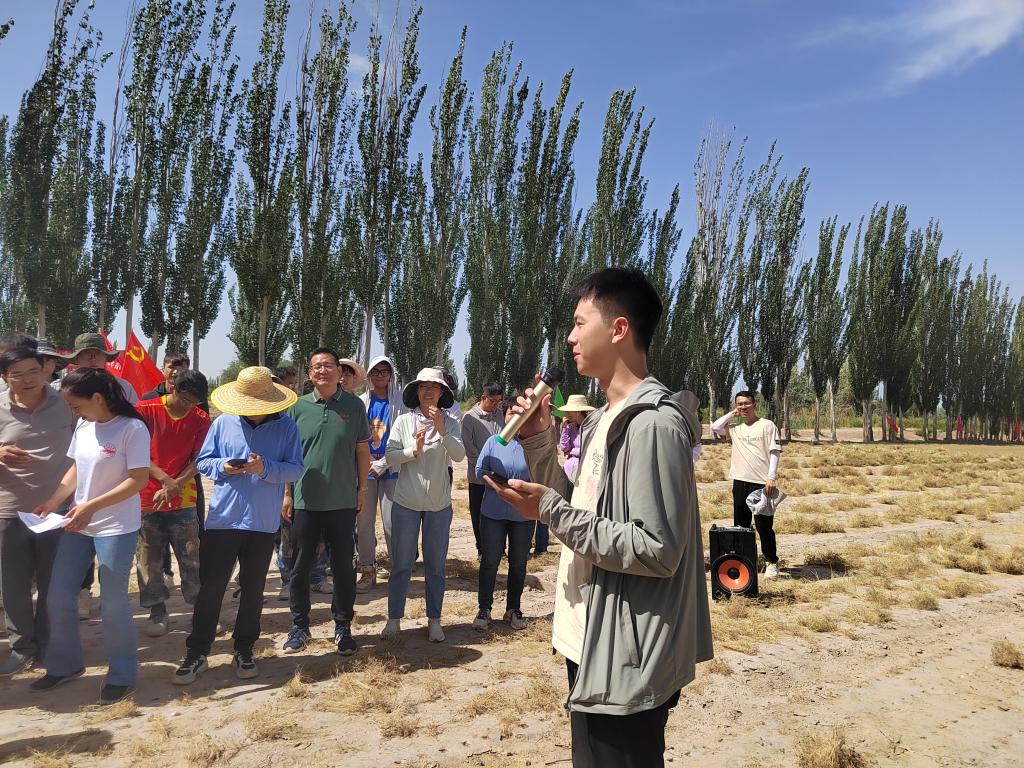 学生代表何瑞通发言,此次活动,让我们深入了解到了南疆乡村,这种深层次的体验和理解,才能够真正了解农业,热爱农业,培养了我们的乡土情怀,也更愿意投身于农业的现代化建设中,为实现乡村振兴战略贡献自己的力量。