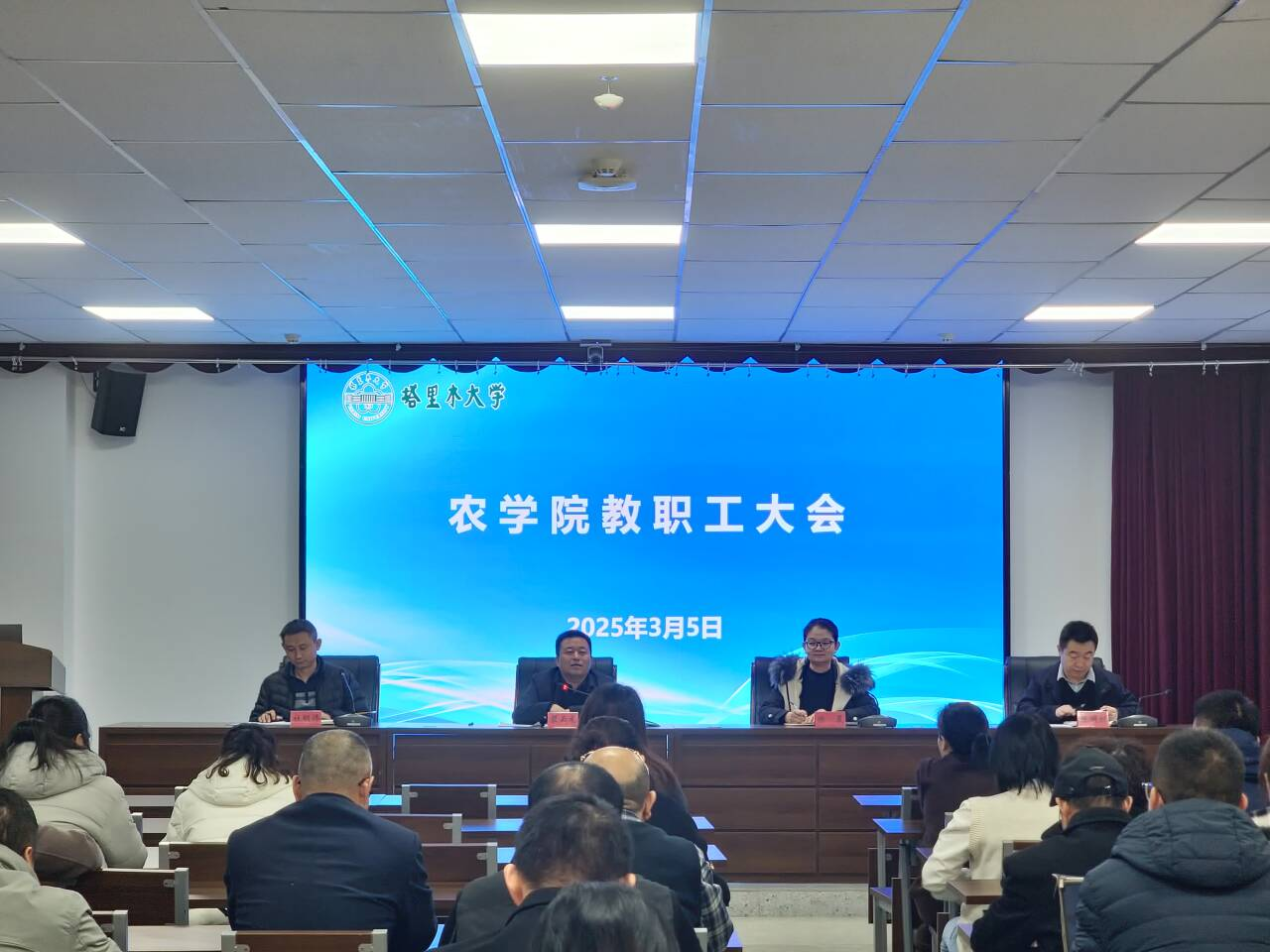 2025年3月5日,新学期全体教职工大会在农科楼225报告厅召开。学院领导班子成员及全体教职工齐聚一堂,共同回顾过去,展望未来,为学院新学期各项工作的顺利开展谋篇布局。本次会议由学院党委副书记、院长翟云龙主持。