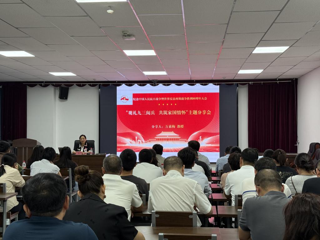 享会上,万素梅教授以生动的语言和真挚的情感,回顾了受邀观礼的荣幸与激动。她详细描述了阅兵式的壮观场面以及现场观众澎湃的爱国热情,并表示将把这次难忘的经历转化为工作的强大动力,以更高的标准做好教育教学、科学研究、管理服务工作。