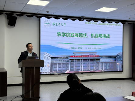 10月25日,农学院举办塔里木大学第二届胡杨英才国际青年学者论坛农学院分论坛,来自国内外知名高校及科研机构等11名青年博士参加论坛。农学院党委书记万素梅、院长翟云龙出席论坛并讲话,学院系主任、教师代表参加,论坛由副院长陈国栋主持。