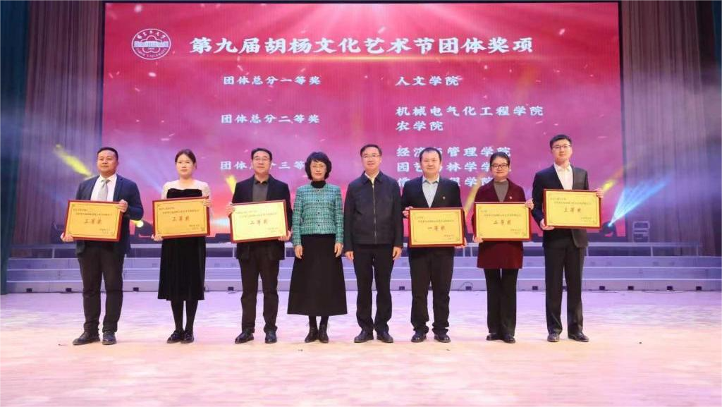 12月9日晚,塔里木大学第九届胡杨文化艺术节总结表彰大会于新校区(东扩区)B5报告厅举行。农学院凭借在艺术节系列活动中的亮眼表现,荣获团体总分二等奖。我院党委副书记、纪委书记陈晨代表学院登台领奖。