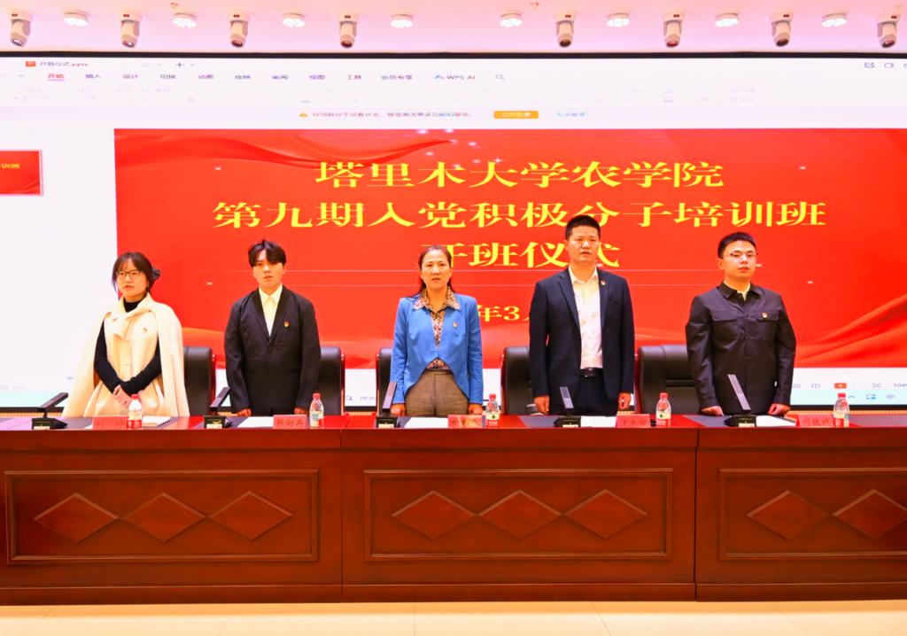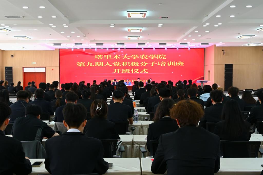2026年3月25日,农学院第九期入党积极分子培训班开班仪式于南疆技术转移中心501举行。学院党委书记万素梅出席并讲话,资环植保系学生党支部书记郑向冉、农学系学生党支部副书记刘婷、研究生党支部副书记闫振鹏出席仪式,127名入党积极分子学员齐聚一堂,共同开启本次培训学习的新征程。开班仪式由党政办公室(党建办公室)主任汪志强主持。