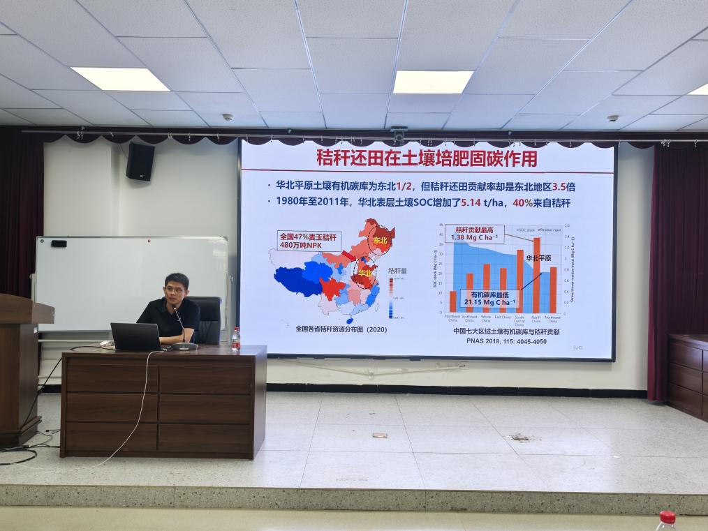 艾超研究员介绍了氮素输入驱动下秸秆腐解微生物群落动态演替规律,以氮素调控秸秆分解的微生物学过程为核心图谱,揭示了氮素水平如何定向塑造功能微生物群落并优化分解路径,引发了在场师生热烈探讨。