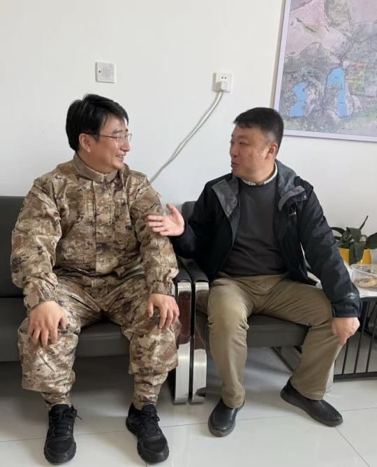 专家一行与四十四团贺明君书记就“科技小院”的平台建设、管理机制及技术推广等议题进行深入交流。贺书记明确表示,在政策支持、资源协调、实验场地等方面全力保障小院发展完善;我校驻四十四团副团长肖海兵副教授也同步表态,将发挥驻团优势,助力小院技术推广与成果转化,为南疆小麦产业高产增收提供坚实保障。