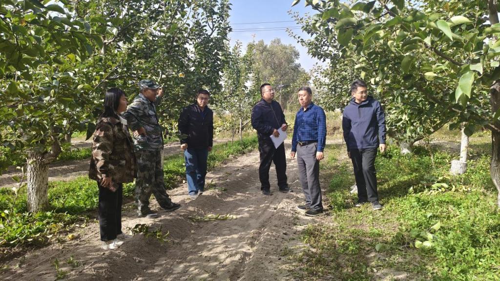 在29团8连,团队前往香梨示范田查看香梨园土壤状况。通过田间调查与农户交流,了解今年香梨生长周期内的施肥情况,团队还对香梨冬季有机肥施用及梨树修剪进行田间指导,为来年丰产打基础。