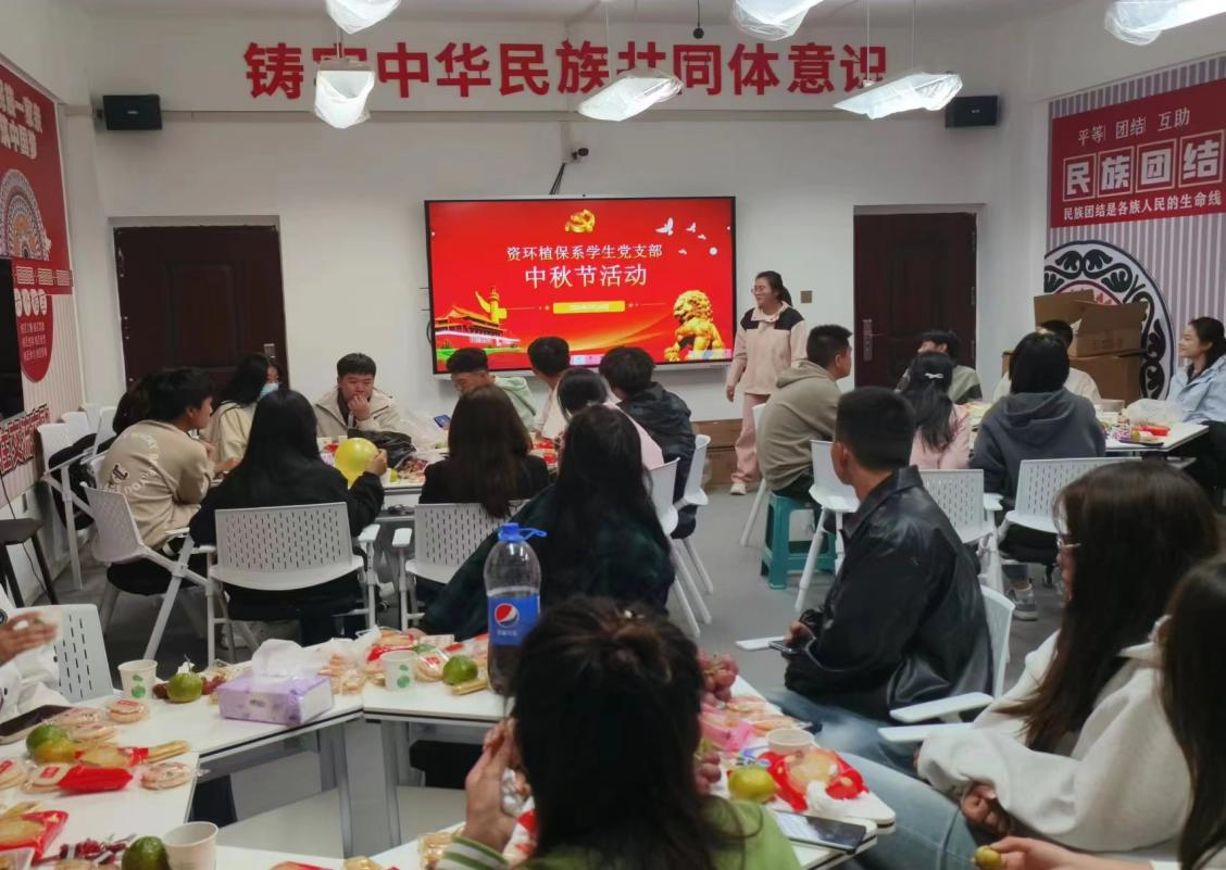 秋风送爽,中秋佳节,阖家团圆之日,为了让在校的同学感受到党支部大家庭的关怀,9月28日晚资环植保系学生党支部在东区十七号学生宿舍楼三楼民族团结活动室开展了欢庆中秋活动。