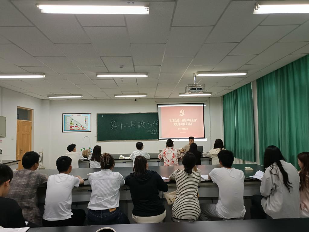为进一步严明党的政治纪律和政治规矩,增强学生党员的纪法意识,引导党员知敬畏、存戒惧、守底线,5月15日下午,农学系学生党支部组织开展了“学党纪、明规矩、守底线”主题党日活动,专题学习新修订的《中国共产党纪律处分条例》(以下简称:《条例》)。党支部书记秦路兵主持会议。