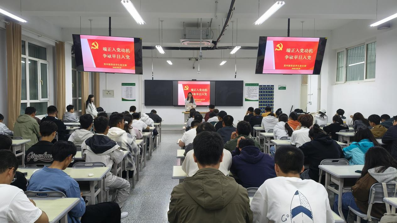 为引导新生坚定理想信念、厚植爱党爱国情怀、树立正确的入党动机,9月29日晚,资环植保系学生党支部于逸夫楼106、阶教6、阶教9分设三个会场开展“端正入党动机,争取早日入党”新生入党知识培训。资环植保系学生党支部全体党员、入党积极分子及资环植保系新生参与此次培训。