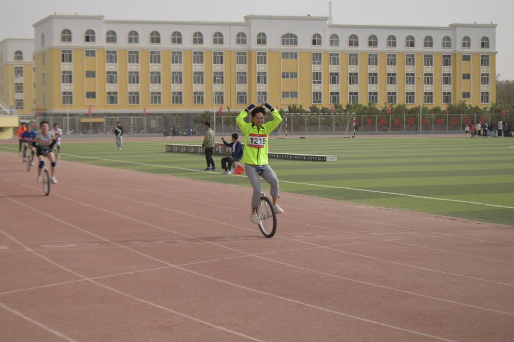 农学2021级4班李宗敏在塔里木大学第四十八届校运会上打破独轮车400米和800米记录,并一举拿下400米、800米、5000米的冠军,被同学们誉为“三冠王”。