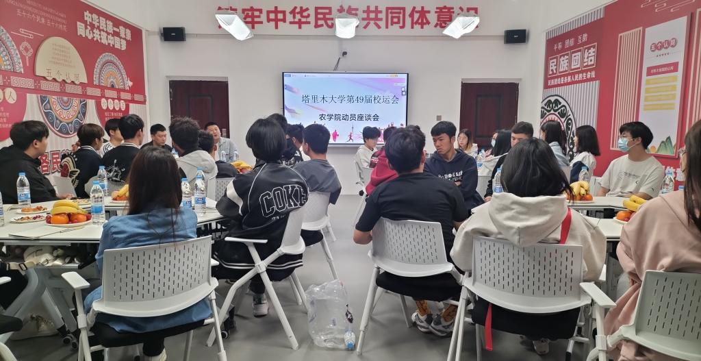 春光作序,万物和鸣。为迎接塔里木大学第49届校运会,鼓舞运动员士气,积极备战校运会,展现农科学子砥砺奋发、自强不息的精神。4月10日上午,农学院于东区十七号宿舍楼三楼民族团结活动室召开第49届校运会动员座谈会。农学院学办主任李亚鹏、团委副书记王婷婷、辅导员王博然、各训练队队长及全体团学干部参加本次座谈会。