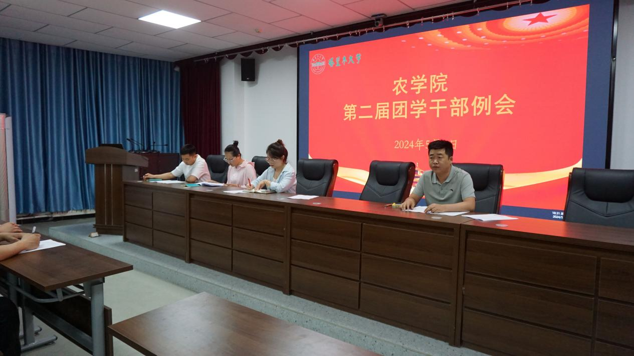 为提高我院团学工作质量和工作效率,提升学生干部的工作能力,加强各部门之间的交流和工作,2024学年农学院第二届团学干部例会于5月8日下午在农科楼225会议室组织召开。农学院团委副书记王婷婷,辅导员郝银璐、李佳萍、秦路兵及全体团学干部参加本次会议,会议由王婷婷老师主持。