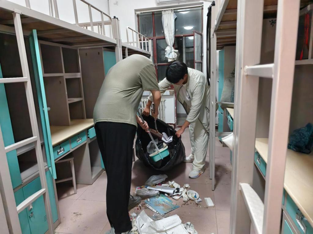 为营造整洁优美的宿舍环境,以最佳面貌迎接2025级新生,9月2日、9月3日晚上,学院组织学生志愿者开展新生宿舍清洁专项行动,用实际行动践行“以生为本”的服务理念,学院辅导员王宏凯及学生志愿者参与本次活动。