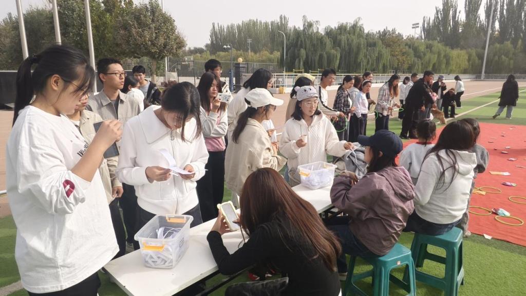 活动围绕“乐享中秋·同贺国庆”主题,设置多个趣味游戏环节。“谜韵中秋”猜灯谜环节,工作人员提前收集有关中秋佳节及校园生活的灯谜,参与者猜中即可获得积分,营造出浓厚的节日氛围;“传统竞技大闯关”环节,丢沙包项目展开激烈竞技,踢毽子项目则比拼次数与技巧,参与的同学都能获得积分;“趣味套圈乐翻天”环节,大家可用获取的积分兑换套圈,套中即可赢得礼品。
