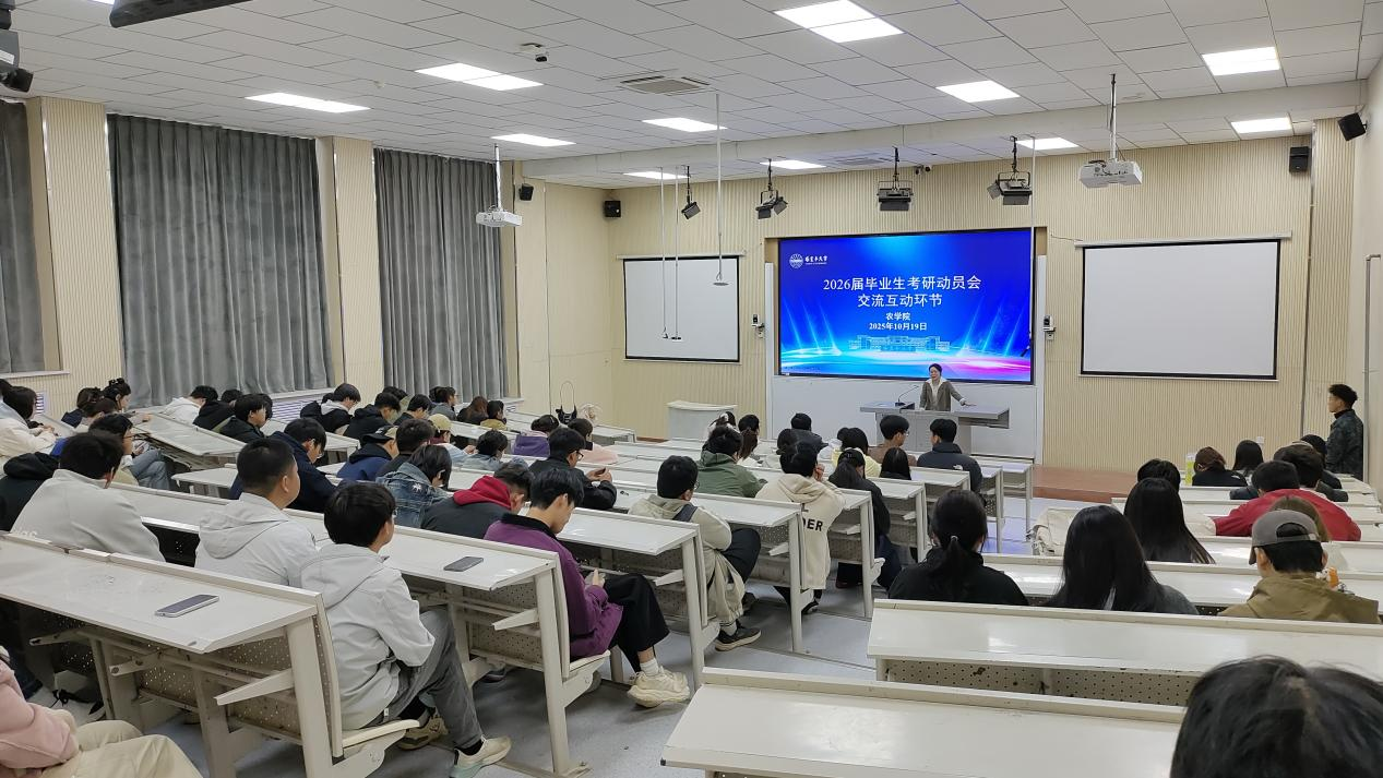 为精准指导2026届毕业生备考规划,为学子升学深造赋能聚力,10月19日下午,学院于综合楼阶梯教室2组织召开2026届毕业生考研动员大会。学院陈文副教授、刘家浩副教授、学生工作办公室主任王婷婷,辅导员闵怡、刘婷及2026届全体毕业生参加此次大会。