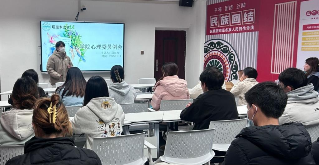 为进一步强化学院心理健康防护体系建设,提升班级心理委员的专业素养与实操能力,充分发挥其“一线观察员”“心灵守护者”的关键作用,2025年11月14日,于“良耜家园”一站式学生成长社区326民族团结活动室召开2025年秋季班级心理委员例会。会议由学院心理辅导员郑向冉主讲,全院班级心理委员参会。
