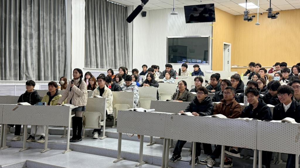 2025年11月27日下午15:30,在《作物育种学》任课老师何良荣教授的组织协调和安排下,塔里木大学农学院农学2023级1班和2班共71名学生,在综合楼阶2教室参与中国农业大学刘杰教授主讲的《作物育种学》-抗病虫育种章节的同步课堂开讲,同时还有西北农林科技大学、黑龙江八一农垦大学及中国农业大学现场学子云端相聚,以主场姿态深度参与互动研讨,在专业知识研学中展现塔大学子的学术素养与实践思考。