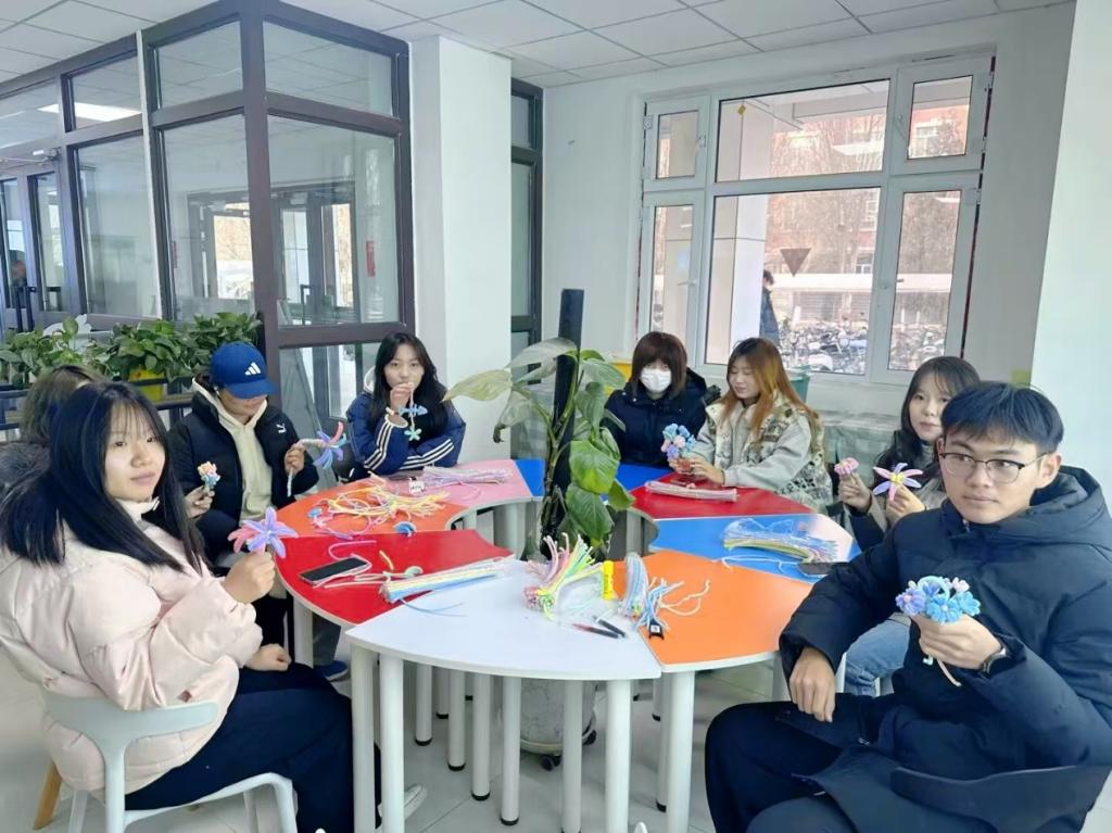 活动伊始,负责人向同学们演示了扭扭棒的使用方法。之后,一根根扭扭棒在同学们灵巧的双手上飞快地缠绕、折叠、拼接,很快,在成员们的全情投入下作品初具雏形,有的同学变化出了一簇精致的手捧花,有的同学手中飞出一只飘扬的挂件。在最后的展示环节中,成员们举着自己的作品合影留念,手中的的作品不仅承载着个人的创意,更饱含着团队成员间的无言默契。