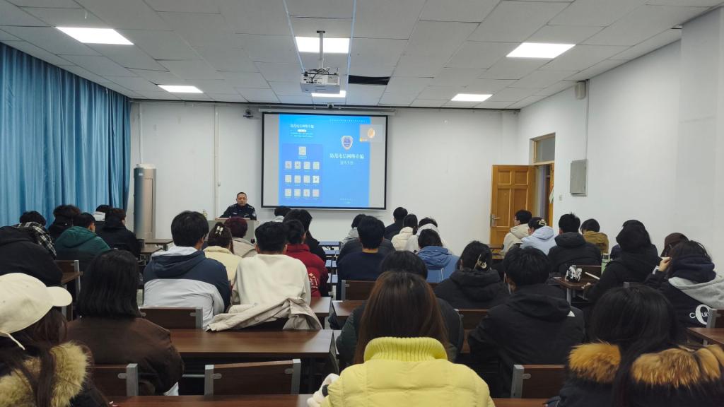 为切实增强我院学生防范电信网络诈骗意识,有效预防诈骗案件发生,守护好学生的“钱袋子”。3月4日下午,我院于农科楼121会议室组织开展“防范电信网络诈骗”主题教育活动。活动邀请民警万拓然现场授课,2023级、2024级、2025级各班班长及宣传委员到场学习,其余学生通过线上直播同步学习。