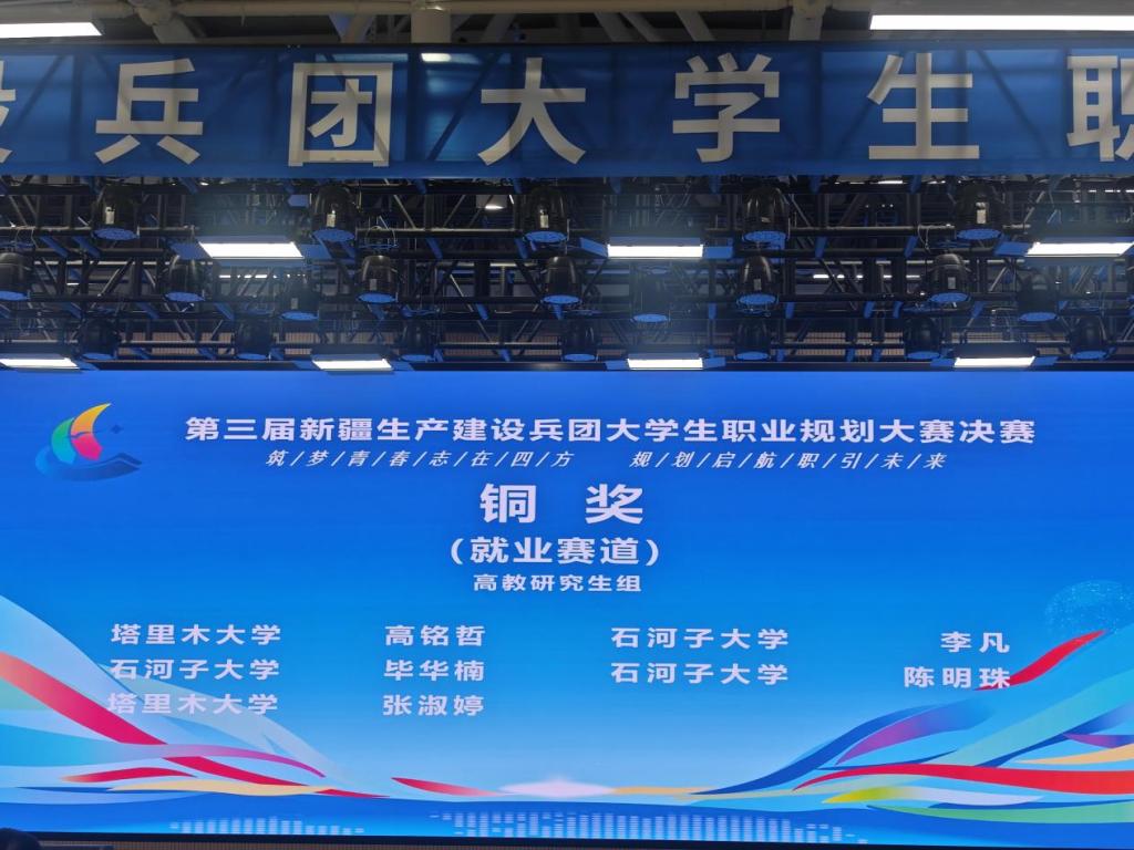 近日,第三届新疆生产建设兵团大学生职业规划大赛决赛圆满落幕。本次大赛以 “筑梦青春志在四方,规划启航职引未来” 为主题,旨在增强大学生职业规划意识,提升就业核心竞争力。我院农艺与种业2023级研究生张淑婷同学在就业赛道高教研究生组决赛现场荣获铜奖,充分展现了我院学子扎实的专业素养和良好的职业规划能力。
