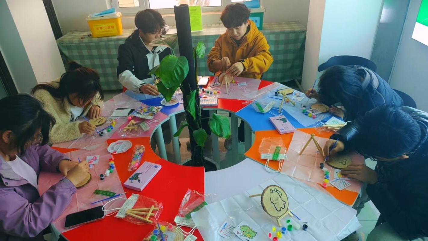 2026年3月15日,学院心理健康部组织的以“在笔墨中放松心灵,勾勒心中的万千风景”为主题的第四期团辅活动在东区十七号楼学生公寓一楼大厅“良耜家园”新农人共享交流区顺利开展。活动以木片为画布,用色彩传递心声,让同学们在沉浸式创作中完成了一场与自我的温馨对话。