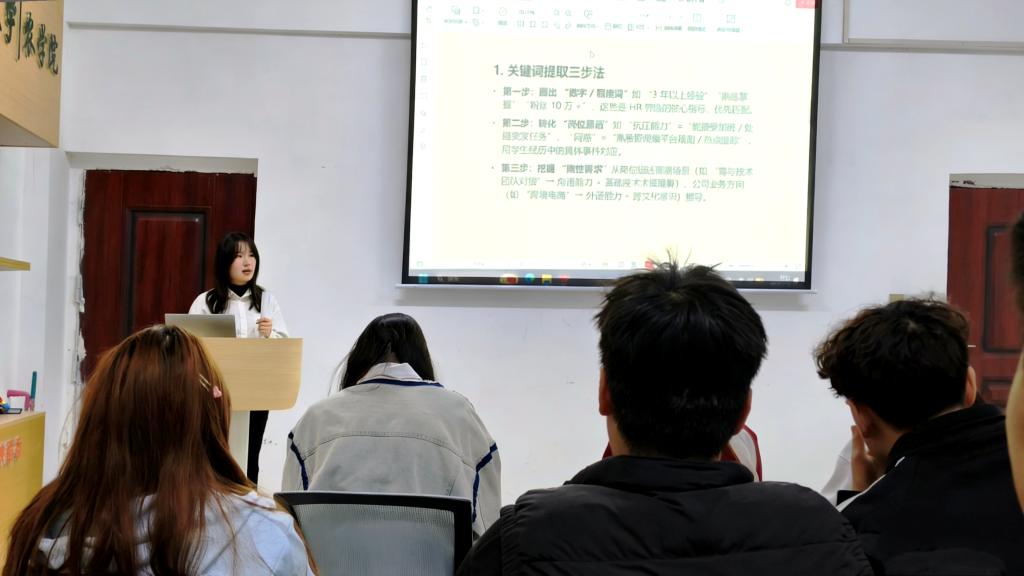 为深入落实毕业生就业指导和服务工作,助力同学们熟练掌握简历撰写技巧与求职核心能力,3月19日,学院在东十七226“就业滴灌室”开展就业指导专题讲座。学院就业辅导员刘婷、毕业班班主任闵怡以及学院各年级学生积极参加。
