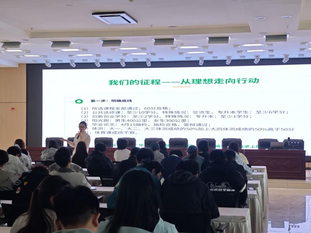 会上,陈晨围绕人才培养目标与毕业要求,向同学们解读了毕业相关要求。随后,陈晨以“理想是什么”“求助是强者的表现”为核心议题展开分享,结合农业从业者为例,引导同学们将个人理想融入国家农业现代化发展,鼓励大家在成长中主动求助、善于借力,锤炼专业本领,勇担时代使命。