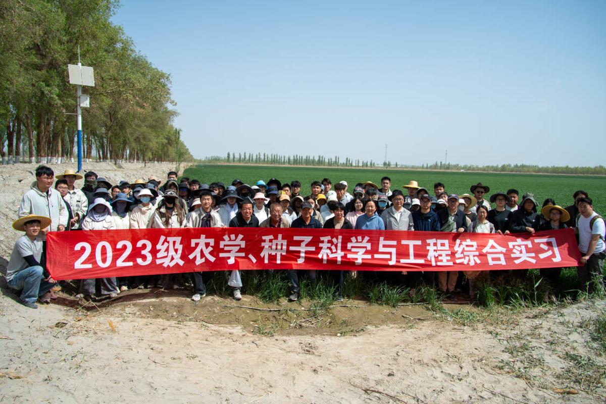 为深化实践教学改革,将专业理论与农业生产实际紧密结合,4月14日,农学院组织师生一行前往第一师七团开展实地参观教学活动。第一师七团党委书记、政委王玉华出席有关活动,农学系教师何良荣、曹新川、王进斌、刘家浩、闫宁宁、郭存、曹耀、刘倩带领农学2023级2、4班及种子科学与工程2023级1、2班全体学生共同参与本次教学活动。活动由十三连党支部书记、指导员张韶华(塔里木大学农学2011届2班)全程协调对接,为实践教学有序开展提供有力保障。