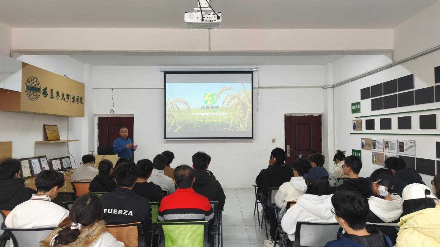 招聘会上,王新董事长结合自身创业经历与行业发展趋势,详细介绍了禾旺农业的发展历程、人才需求及职业发展体系,重点解读了农业技术推广、农产品研发等岗位的任职要求与发展前景。王新强调,农学院学子扎根基层、吃苦耐劳的品质与企业发展需求高度契合,希望更多农科学子加入禾旺农业,深耕现代农业领域。