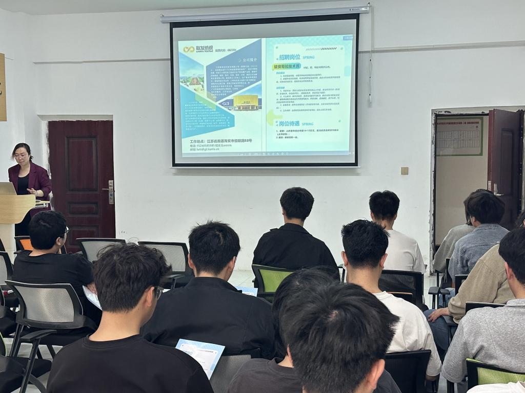 为拓宽我院学子就业渠道,助力学子实现高质量就业,4月10日,江苏联发纺织股份有限公司专场宣讲会在东十七学生公寓楼226就业滴灌室顺利举办,我院相关专业毕业生积极参与。