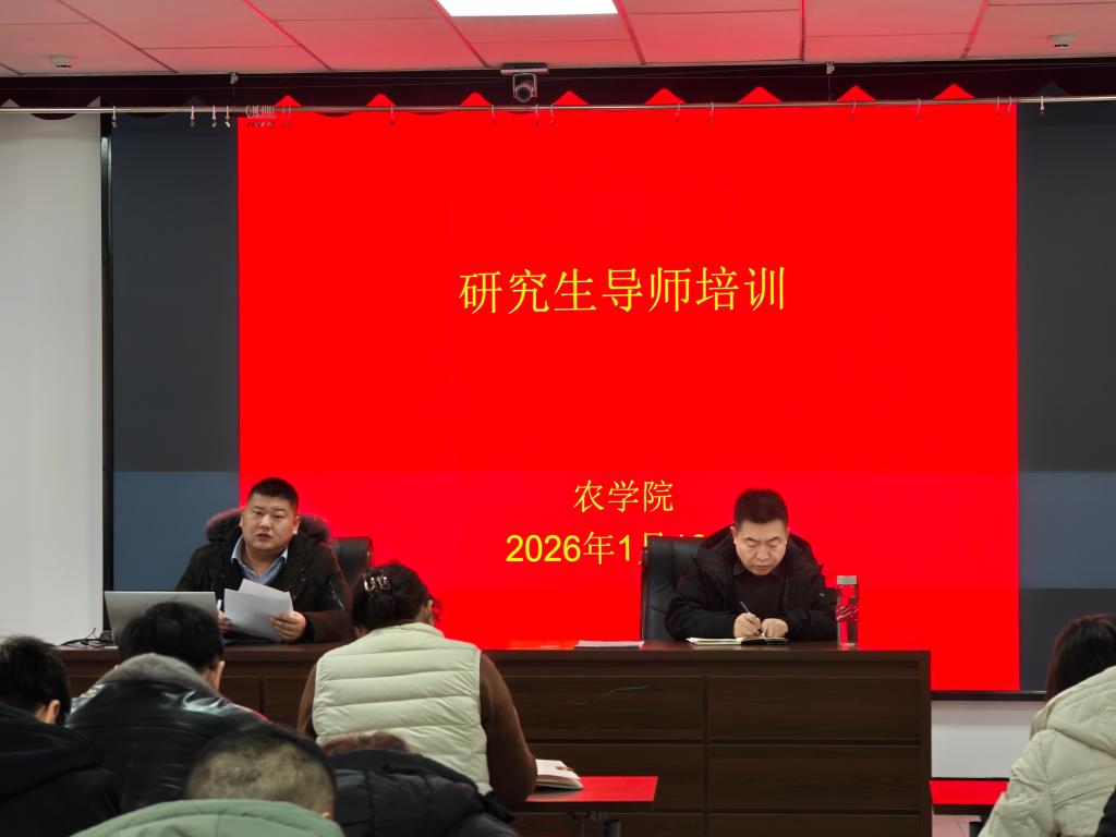 为进一步加强研究生导师队伍建设,全面提升研究生培养质量与管理水平。1月16日上午,农学院组织召开研究生导师培训暨寒假研究生管理工作系列专题会议。会议围绕招生廉洁、科研诚信、论文质量、就业促进、假期安全等核心工作开展集中学习与部署,并就2026年度国家自然科学基金申报工作进行动员研讨。会议由科研与研究生管理办公室李亚鹏主持,学院副院长陈国栋教授、科研与研究生管理办公室工作人员、全体研究生导师参会。